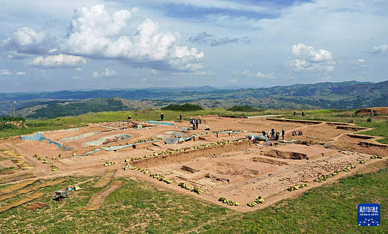 這是2022年6月10日拍攝的甘肅省隴南市禮縣四角坪遺址考古發(fā)掘現(xiàn)場(無人機(jī)照片)。