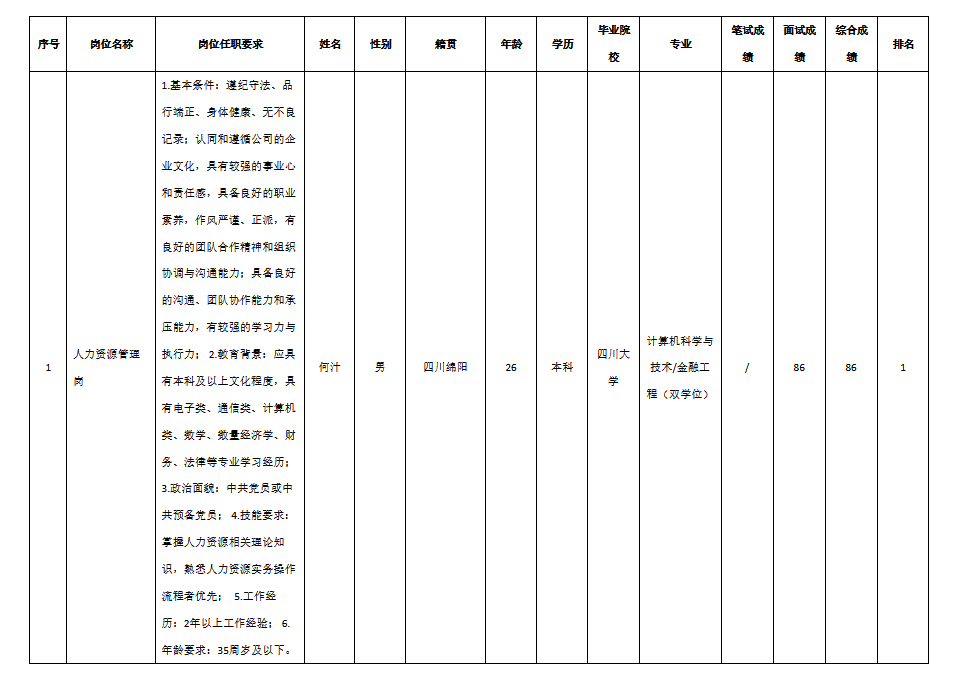 根據(jù)四川九州投資控股集團(tuán)有限公司發(fā)布的招聘公告及招聘相關(guān)規(guī)定,經(jīng)筆試、面試等程序,現(xiàn)將筆試(面試)成績(jī)予以公示。