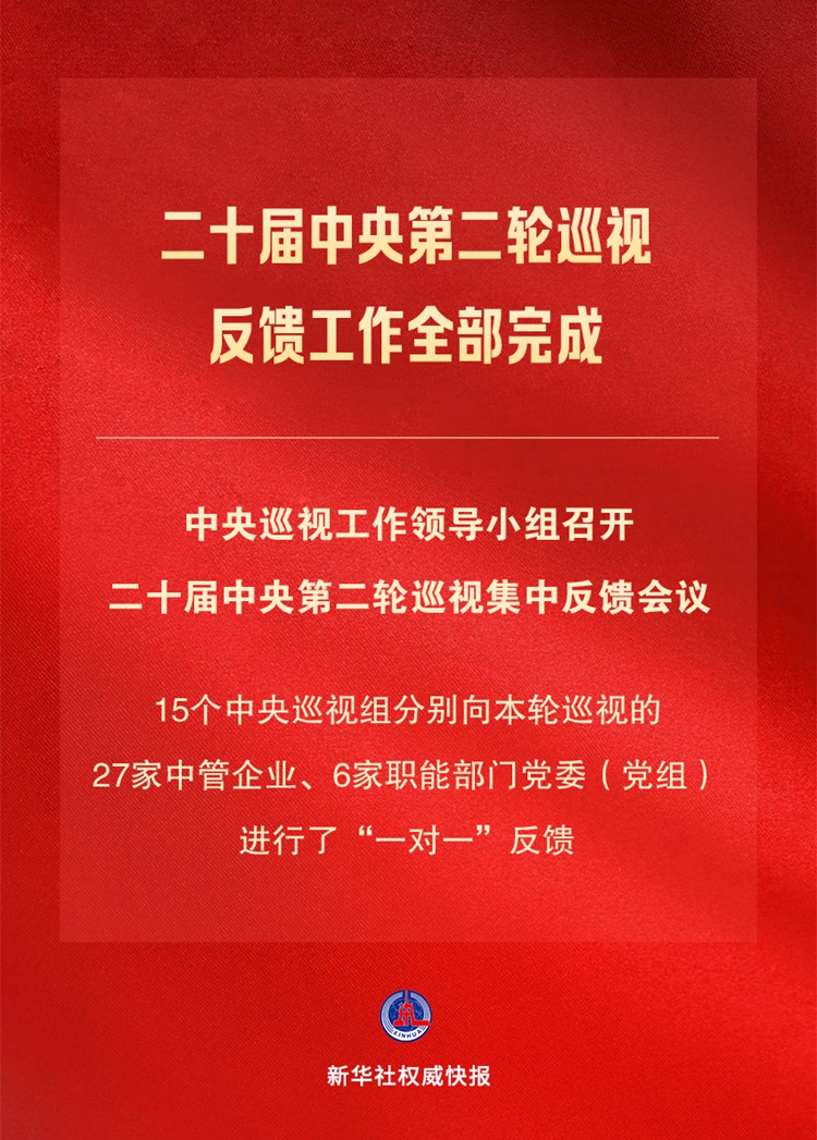 新華社北京3月30日電 根據(jù)黨中央部署,二十屆中央第二輪巡視反饋工作近日全部完成。本輪巡視反饋采取集中反饋和巡視組“一對(duì)一”反饋相結(jié)合的方式進(jìn)行。