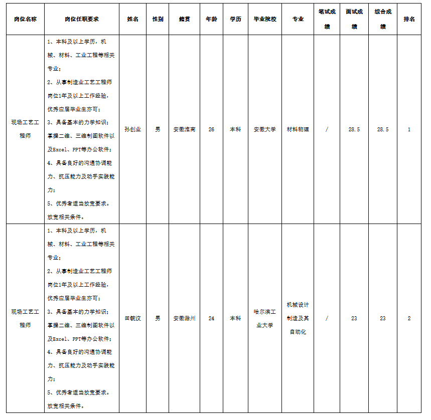 根據(jù)中科美菱低溫科技股份有限公司發(fā)布的招聘公告及招聘相關規(guī)定,經(jīng)筆試、面試等程序,現(xiàn)將筆試(面試)成績予以公示。