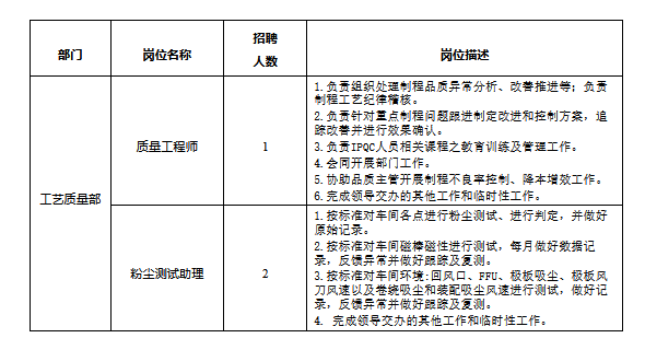 4.工作經(jīng)歷:具有鋰電池行業(yè)現(xiàn)場(chǎng)質(zhì)量管理、質(zhì)量測(cè)試工作經(jīng)驗(yàn)者優(yōu)先考慮,特別優(yōu)秀者,可適當(dāng)放寬學(xué)歷及專(zhuān)業(yè)要求。