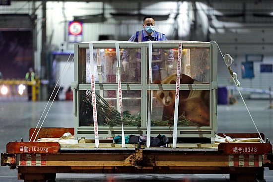 4月3日晚,旅韓大熊貓“福寶”搭乘專機(jī)抵達(dá)成都雙流國際機(jī)場后,準(zhǔn)備乘車前往中國大熊貓保護(hù)研究中心臥龍神樹坪基地進(jìn)行隔離檢疫。新華社記者 沈伯韓 攝