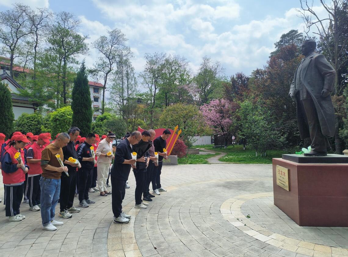 全體黨員、團(tuán)員向四川傳播馬克思主義的宣傳者和組織者,四川早期黨、團(tuán)組織的創(chuàng)始人之一王右木默哀后,敬獻(xiàn)了黃菊花,表達(dá)對(duì)先烈的追思和緬懷。