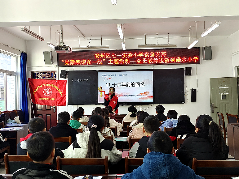 2024年3月28日,安州區(qū)“七一”實(shí)驗(yàn)小學(xué)黨員教師送教團(tuán)隊(duì)前往雎水小學(xué)開展了以“黨徽踐諾在一線 送教厚植紅色基因”為主題的送教交流活動(dòng),特邀教研室語文教研員楊春霞老師同行。
