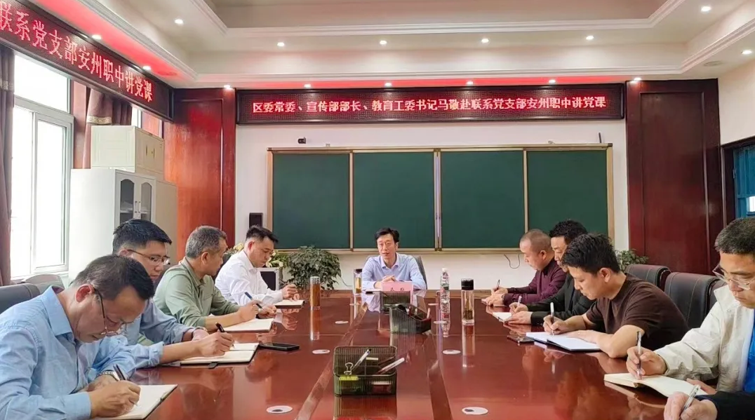 4月1日下午,安州區(qū)委常委、宣傳部部長(zhǎng)、教育工委書記馬敬深入安州區(qū)高級(jí)職業(yè)中學(xué)調(diào)研,在該校黨員活動(dòng)室為黨員作了以《全面加強(qiáng)黨組織的基層建設(shè)》為題的黨課。