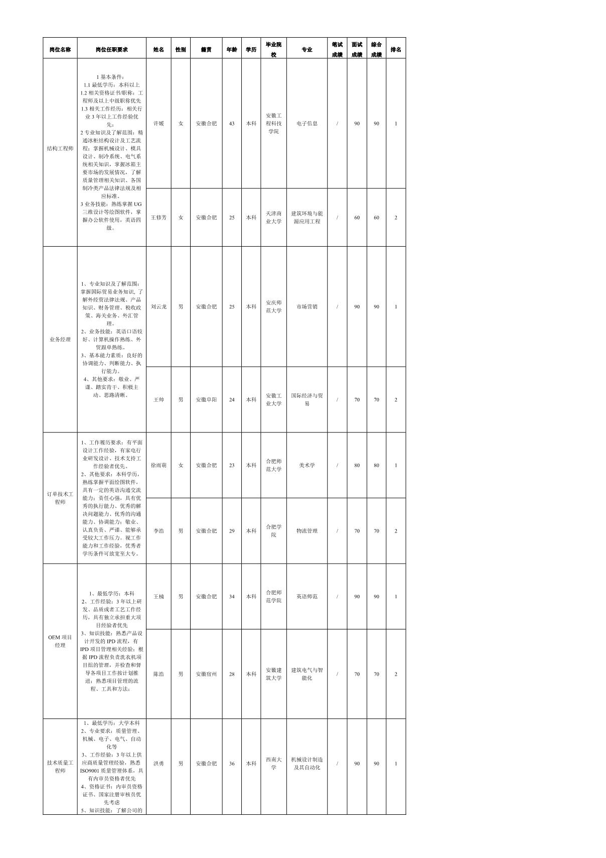 根據(jù)長(zhǎng)虹美菱股份有限公司發(fā)布的招聘公告及招聘相關(guān)規(guī)定,經(jīng)筆試、面試等程序,現(xiàn)將筆試(面試)成績(jī)予以公示。