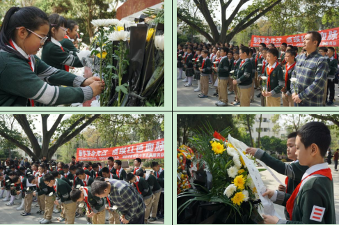學(xué)生高舉隊(duì)旗,邁著整齊的步伐,心懷對(duì)烈士們的敬佩之情來(lái)到紀(jì)念碑前。莊嚴(yán)的祭掃儀式上,唱隊(duì)歌,敬獻(xiàn)花籃,師生集體默哀,表達(dá)了對(duì)先烈們的哀思和最崇高的敬意。