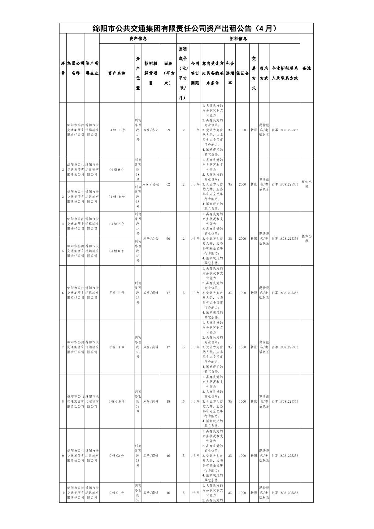 綿陽市公共交通集團(tuán)有限責(zé)任公司資產(chǎn)出租公告(4月)
