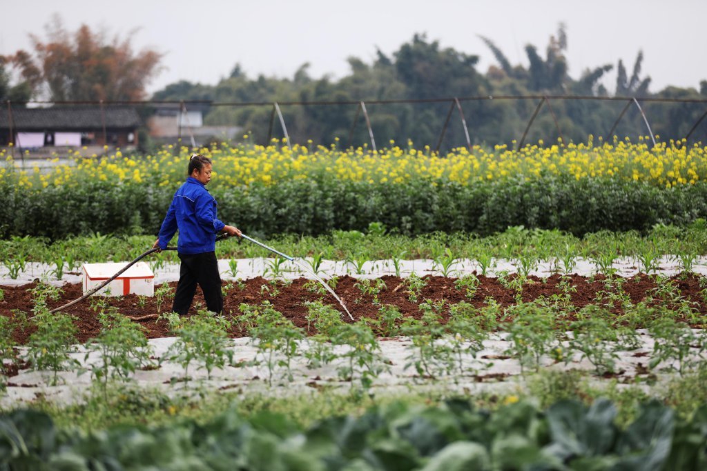 宜賓市南溪區(qū)仙源街道長江村村民正進行田間管理。 蘭鋒 攝