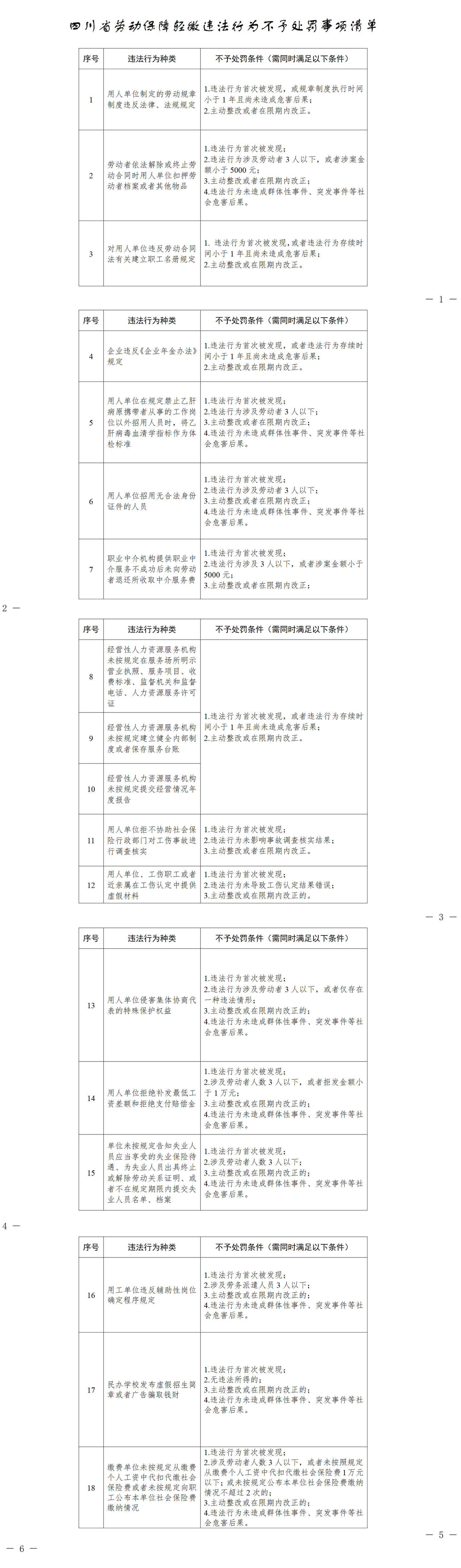 以后,四川省人力資源和社會保障廳將不定期根據(jù)法律法規(guī)的修改廢情況,對四川省勞動保障輕微違法行為不予處罰清單進(jìn)行更新修訂。