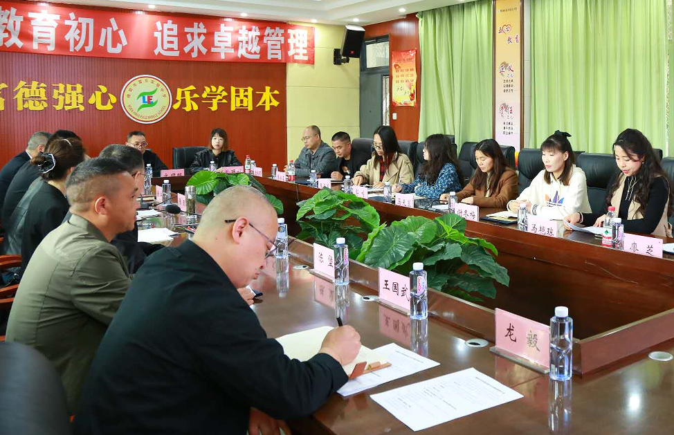 該校黨委副書記岳文代表學(xué)校指導(dǎo)教師進(jìn)行講話,并從三個(gè)方面與八寨鎮(zhèn)中學(xué)的跟崗教師團(tuán)隊(duì)細(xì)致分享了學(xué)校全體教師的日常工作情況以及學(xué)校管理方法。一是抓教師團(tuán)隊(duì)建設(shè)。在學(xué)校領(lǐng)導(dǎo)人強(qiáng)有力的帶領(lǐng)下學(xué)校全體教師具有強(qiáng)烈的榮譽(yù)感,積極勇爭(zhēng)一流。二是抓教師培訓(xùn)。學(xué)校鼓勵(lì)并支持按各學(xué)科組多樣化進(jìn)行集體備課,提高教育教學(xué)質(zhì)量,并且讓優(yōu)秀有經(jīng)驗(yàn)的教師指導(dǎo)青年教師,促進(jìn)青年教師的成長與發(fā)展,開展“師徒結(jié)對(duì)幫扶”活動(dòng)。三是分段進(jìn)行學(xué)生管理。初中階段三個(gè)年級(jí)進(jìn)行三個(gè)階段的管理,初一年級(jí)注重培養(yǎng)學(xué)生講衛(wèi)生、講禮貌、會(huì)學(xué)習(xí)、會(huì)質(zhì)疑、會(huì)交流的能力;初二年級(jí)重視學(xué)生分流,防止學(xué)生成績兩極分化,關(guān)注中等生,鼓勵(lì)后進(jìn)生,帶領(lǐng)班級(jí)整體發(fā)展,讓學(xué)生享受成功的喜悅;初三年級(jí)側(cè)重“正心態(tài)、調(diào)狀態(tài)、明志向”,充分尊重人才成長的發(fā)展規(guī)律,提高教育教學(xué)質(zhì)量。