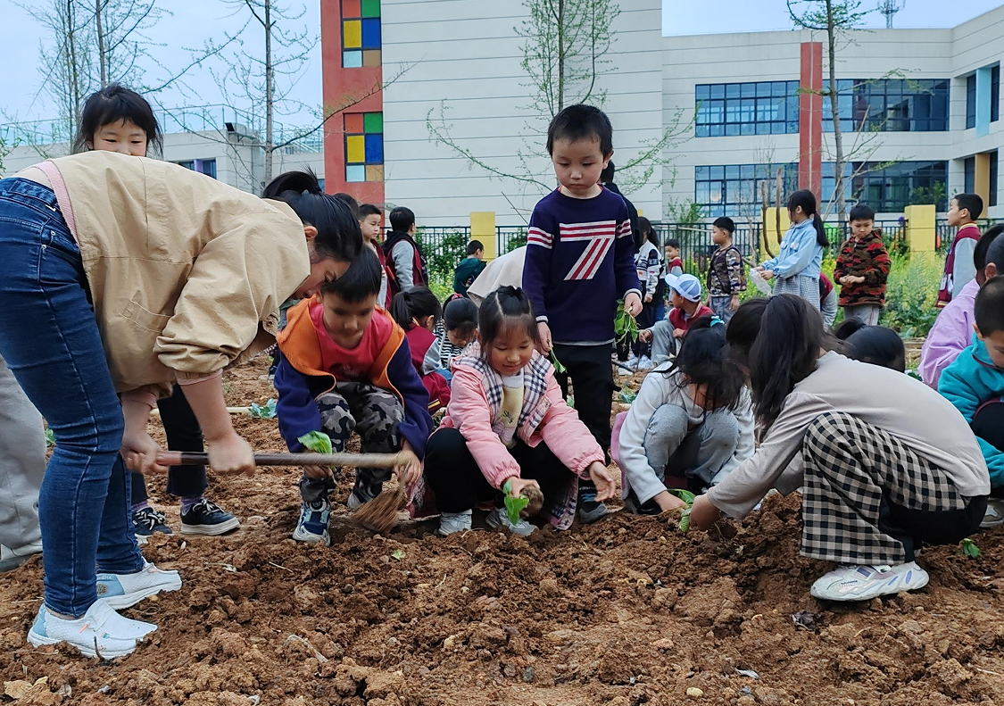 種植活動中,同學們迫不及待地想為心愛的蔬菜苗、種子安個“家”,開啟了一場蔬菜種植之旅。同學們在老師的協(xié)助下,鼓足干勁,揮鍬動土,緊實的土經(jīng)過辛苦勞作重新變得松軟,在挖好的坑里栽下了各種蔬菜苗,播下了各種種子,個個忙得不亦樂乎,快樂的心情溢于言表,