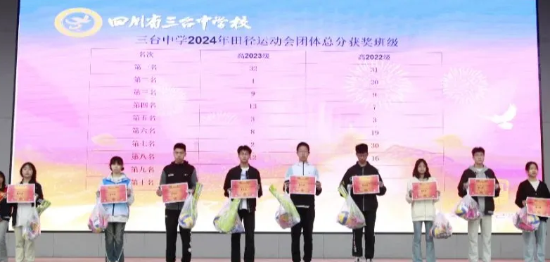 為了進(jìn)一步加強(qiáng)學(xué)校體育工作,推動青少年文化學(xué)習(xí)和體育鍛煉協(xié)調(diào)發(fā)展,4月9日,三臺中學(xué)召開了以“汗水揮灑青春 拼搏成就夢想”為主題的2024年田徑運(yùn)動會表彰總結(jié)大會,表彰了運(yùn)動會中涌現(xiàn)的先進(jìn)個人、優(yōu)秀團(tuán)體和風(fēng)采班級。