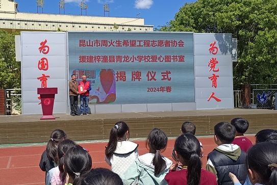 4月10日上午,昆山市周火生希望工程志愿者協(xié)會援建梓潼縣青龍小學(xué)校愛心圖書室揭牌儀式在青龍小學(xué)隆重舉行。