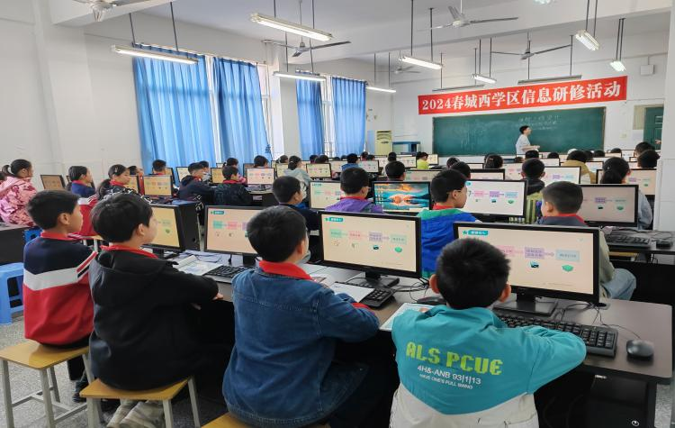 為了深入推進(jìn)涪城區(qū)義務(wù)教育教學(xué)改革實(shí)驗(yàn)區(qū)建設(shè),進(jìn)一步推進(jìn)小學(xué)信息學(xué)課的研修活動(dòng),共同探討信息學(xué)科的高校課堂,構(gòu)建靈動(dòng)課堂,加強(qiáng)信息老師之間的學(xué)習(xí)交流,促進(jìn)信息教師的不斷進(jìn)步與成長(zhǎng),2024年3月29日,涪城區(qū)城西學(xué)區(qū)在西山路小學(xué)舉行了以“學(xué)科研修促成長(zhǎng),思維碰撞謀發(fā)展”為主題的信息學(xué)科研修活動(dòng)。由涪城區(qū)信息中心組骨干教師、花園實(shí)驗(yàn)小學(xué)吳海嘯老師牽頭主持,特邀信息中心組骨干教師任佳妹老師蒞臨指導(dǎo),城西學(xué)區(qū)信息組所有老師參加了此次活動(dòng)。