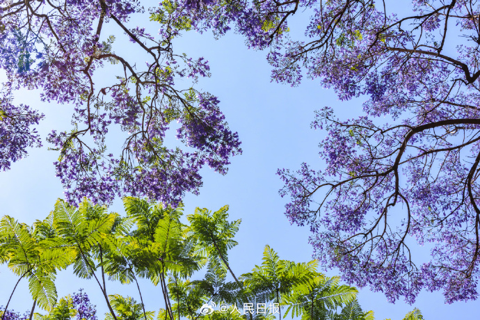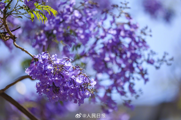 近日,云南昆明教場(chǎng)中路的藍(lán)花楹開放,城市籠罩在紫色花海中,夢(mèng)幻十足。