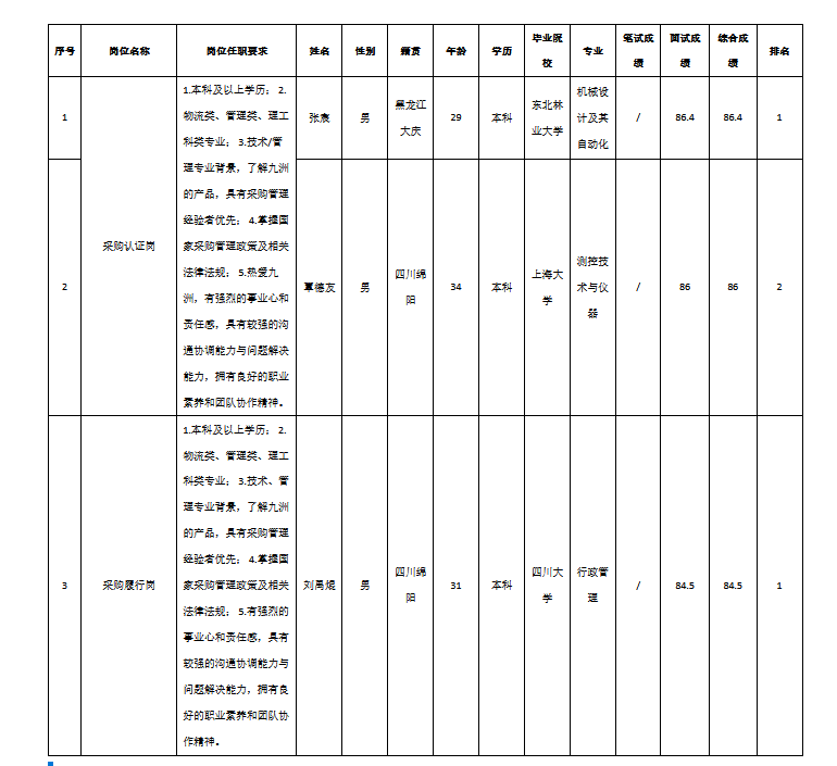 根據(jù)四川迪佳通電子有限公司發(fā)布的招聘公告及招聘相關(guān)規(guī)定,經(jīng)筆試、面試等程序,現(xiàn)將筆試(面試)成績予以公示。