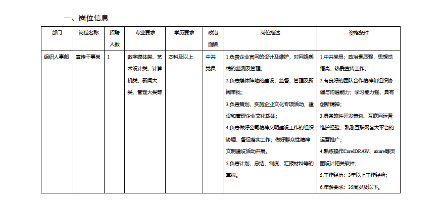 一、崗位信息