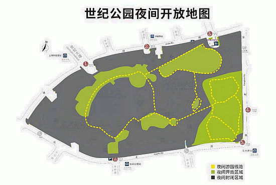 世紀(jì)公園5月1日擬實行24小時開放的區(qū)域示意圖。(園方供圖)