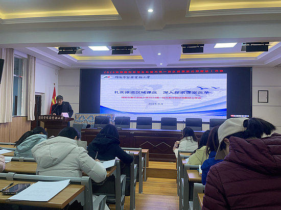綿陽新聞網(wǎng)訊 為了扎實(shí)推進(jìn)學(xué)校數(shù)學(xué)教研工作,明確教研工作努力的方向和新學(xué)期的教研任務(wù)、目標(biāo)。近日,綿陽市富樂實(shí)驗小學(xué)數(shù)學(xué)組在一校區(qū)多媒體教室舉行了以“扎實(shí)推進(jìn)區(qū)域課改 深入探索課堂改革”為主題的教研會。會議由教研組長賴睿睿老師主持。