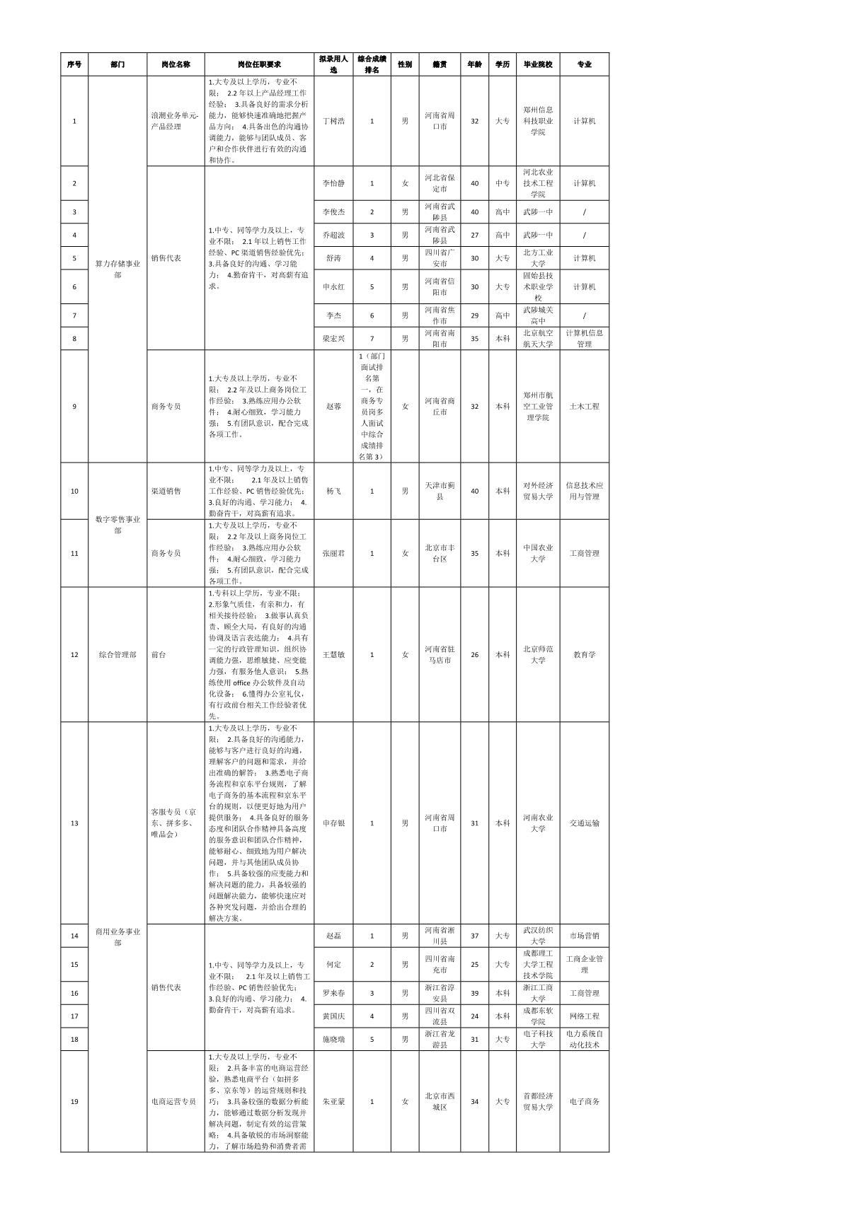 根據(jù)北京九州科瑞科技有限公司發(fā)布的招聘公告及招聘相關(guān)規(guī)定,經(jīng)筆試、面試、考察、體檢等程序,擬錄用張麗君等同志到北京九州科瑞科技有限公司工作,現(xiàn)予以公示,具體情況如下: