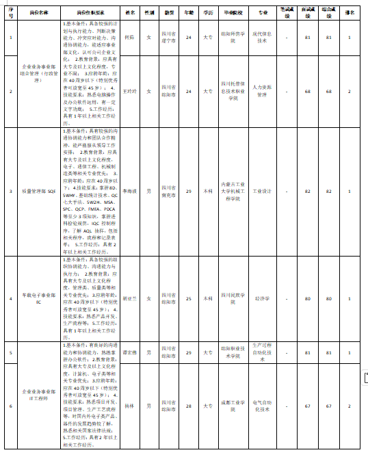 根據(jù)四川九州電子科技股份有限公司發(fā)布的招聘公告及招聘相關(guān)規(guī)定,經(jīng)筆試、面試等程序,現(xiàn)將筆試(面試)成績予以公示。