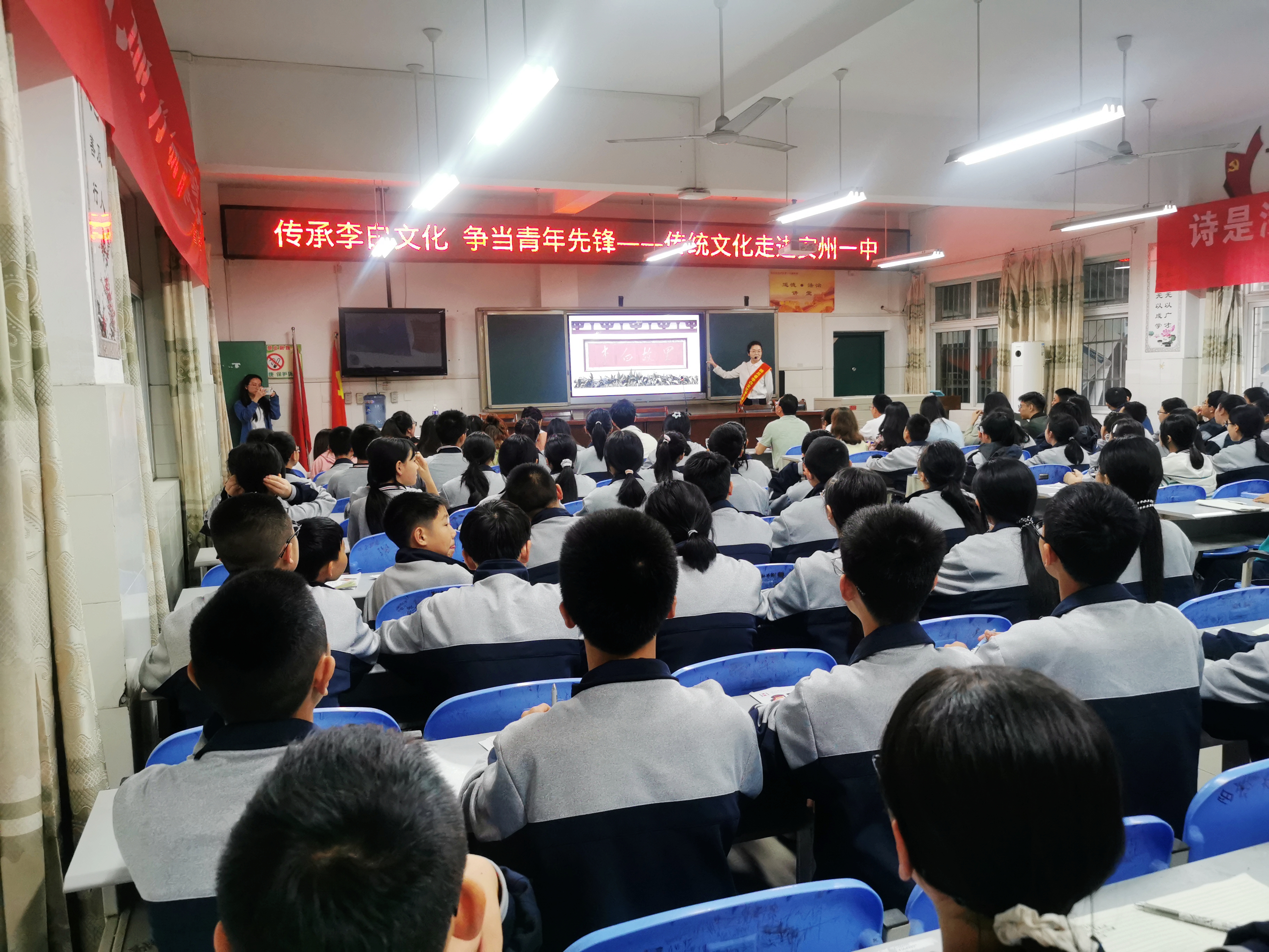 2024年4月18日,四川省江油市李白紀(jì)念館走進(jìn)安州區(qū)第一初級(jí)中學(xué),開展了以“傳承李白文化,爭(zhēng)當(dāng)青年先鋒”為主題李白文化普及講座活動(dòng),全校共青團(tuán)員和青年教師參加活動(dòng)。本次活動(dòng)旨在進(jìn)一步弘揚(yáng)傳統(tǒng)文化,讓青年教師和學(xué)子們更加深入地了解李白這位偉大詩人的生平和作品,激發(fā)他們對(duì)傳統(tǒng)文化的熱愛和傳承意識(shí)。