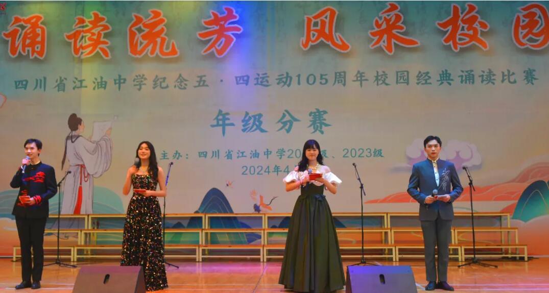 為了進一步弘揚和傳承中華民族燦爛文化,營造積極向上的校園文化氛圍,展現(xiàn)學子風采,4月17日晚,江油中學高2022級在學校體育館舉行了以“聆聽時代跫音,擘畫青春華章”為主題的紀念五四運動系列活動之“誦讀流芳,風采校園”的校園經(jīng)典誦讀比賽年級分賽活動。