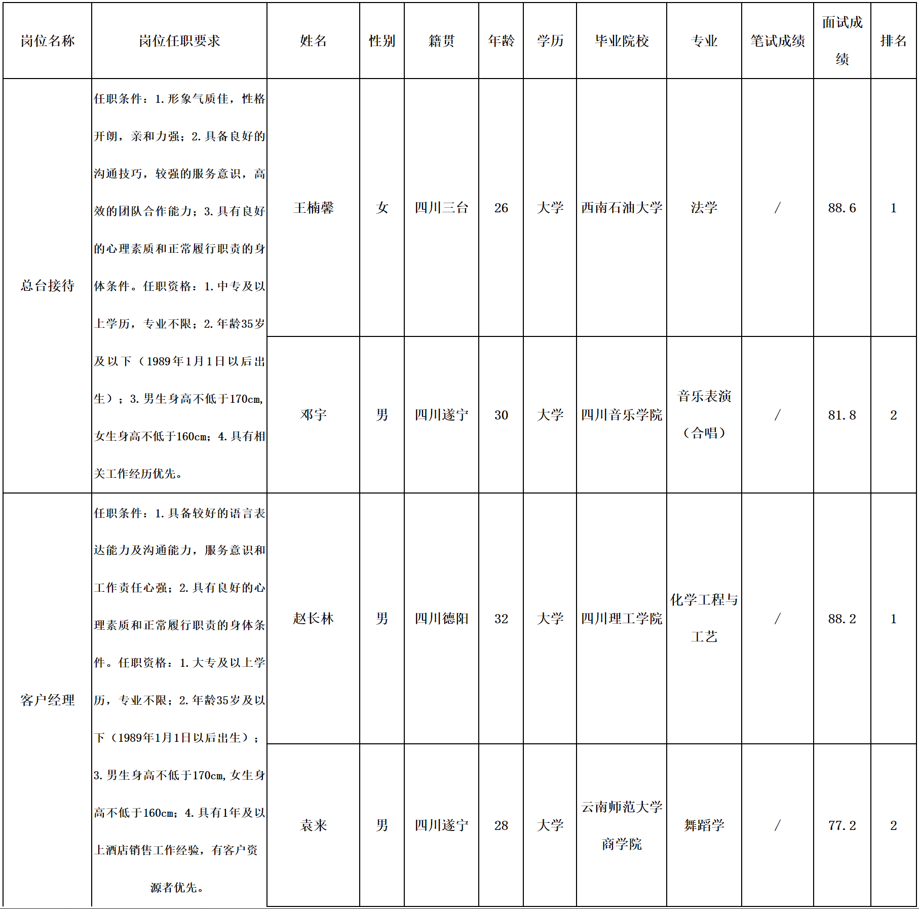 根據(jù)綿陽燃?xì)饧瘓F(tuán)有限公司公司發(fā)布的招聘公告及招聘相關(guān)規(guī)定,經(jīng)面試等程序,現(xiàn)將面試成績予以公示。