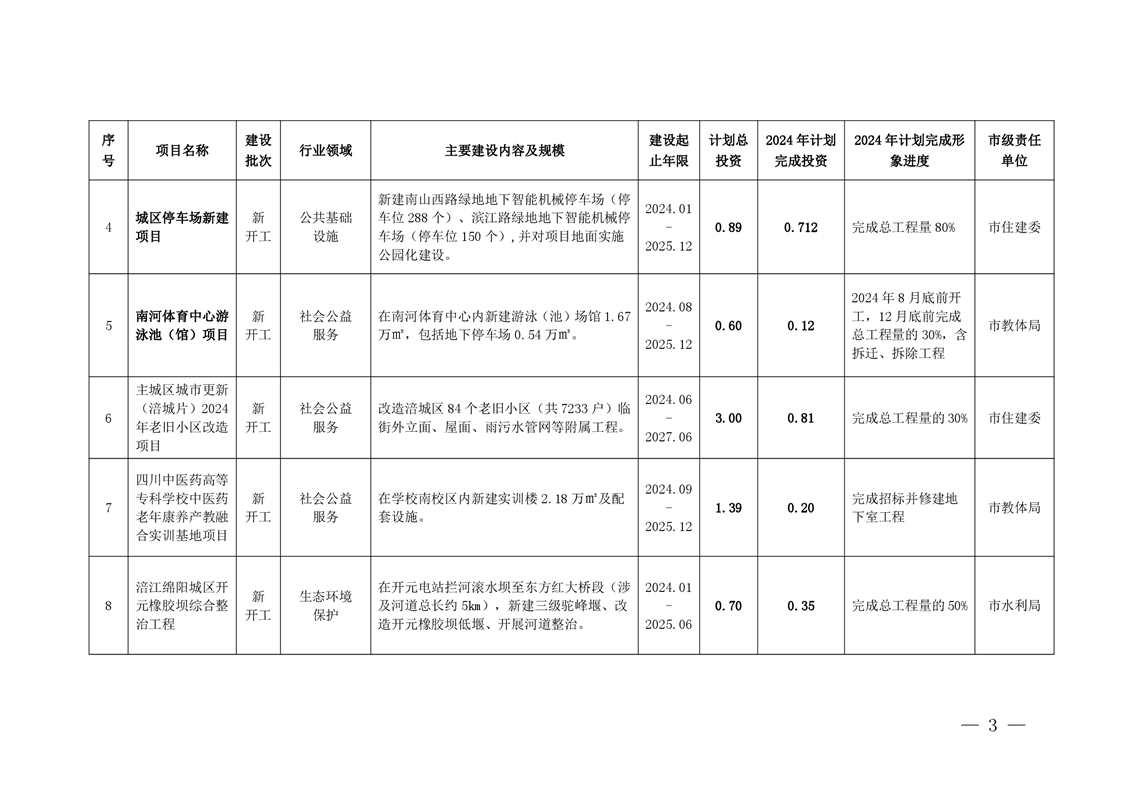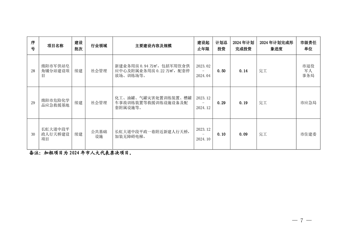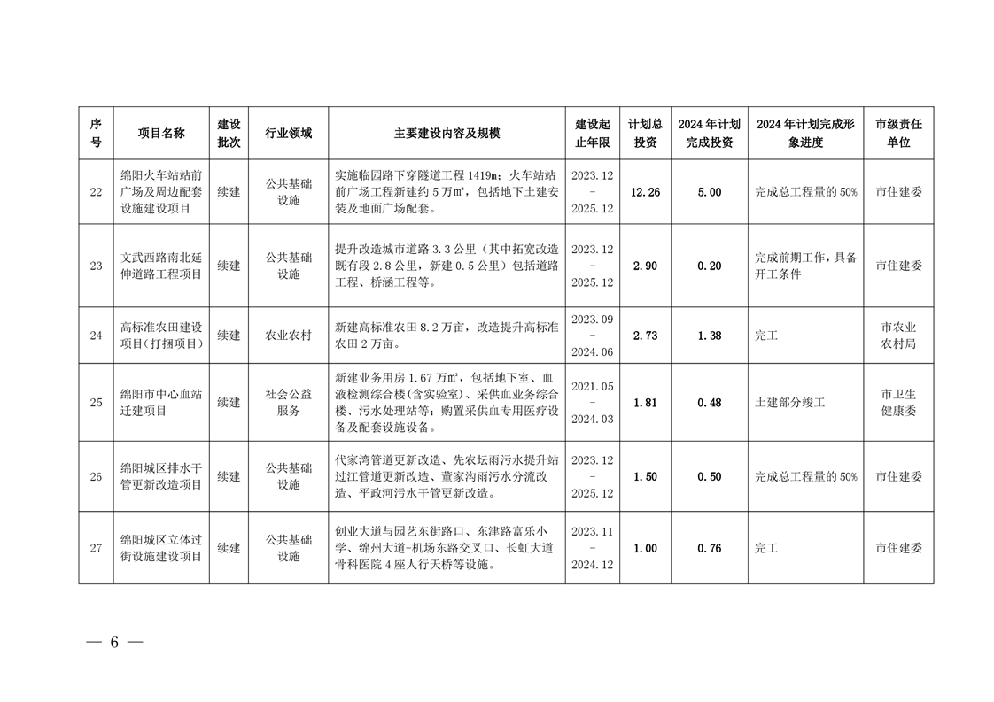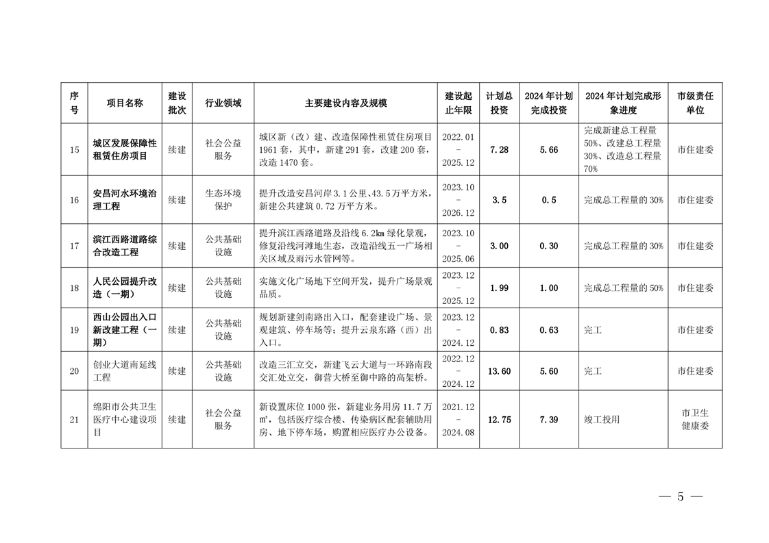 2024年綿陽市本級政府投資項目年度計劃