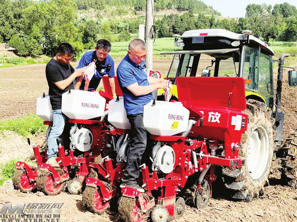農(nóng)機手指導(dǎo)村民機械化播種