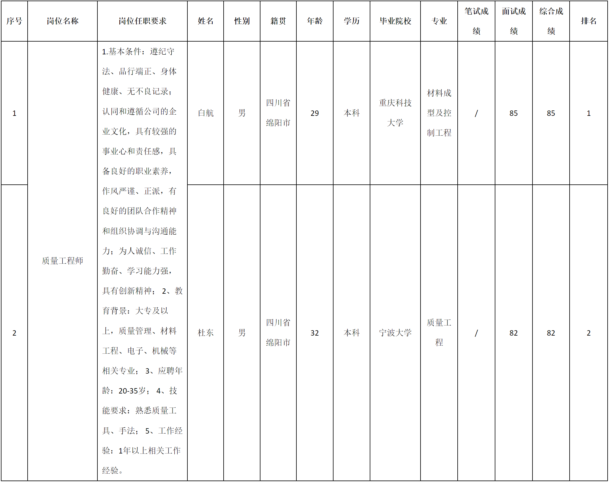 根據(jù)四川九華光子通信技術有限公司發(fā)布的招聘公告及招聘相關規(guī)定,經(jīng)筆試、面試等程序,現(xiàn)將筆試(面試)成績予以公示。