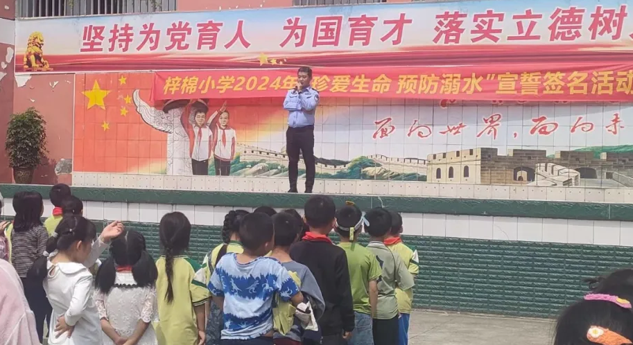 為了進(jìn)一步增強在校學(xué)生對法律知識的了解和防溺水安全意識,切實維護(hù)在校學(xué)生合法權(quán)益,幫助學(xué)生知敬畏、強能力,樹立知法、懂法、守法的意識。4月26日下午,游仙區(qū)鹽泉鎮(zhèn)梓棉小學(xué)特邀法治副校長、信義派出所民警胥警官給全體師生開展了以“法治教育進(jìn)校園,護(hù)航青春助成長”為主題的講座暨防溺水安全教育主題宣傳活動。
