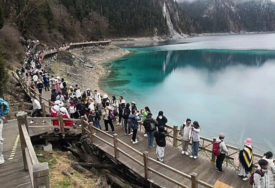 九寨溝景區(qū)游客絡(luò)繹不絕