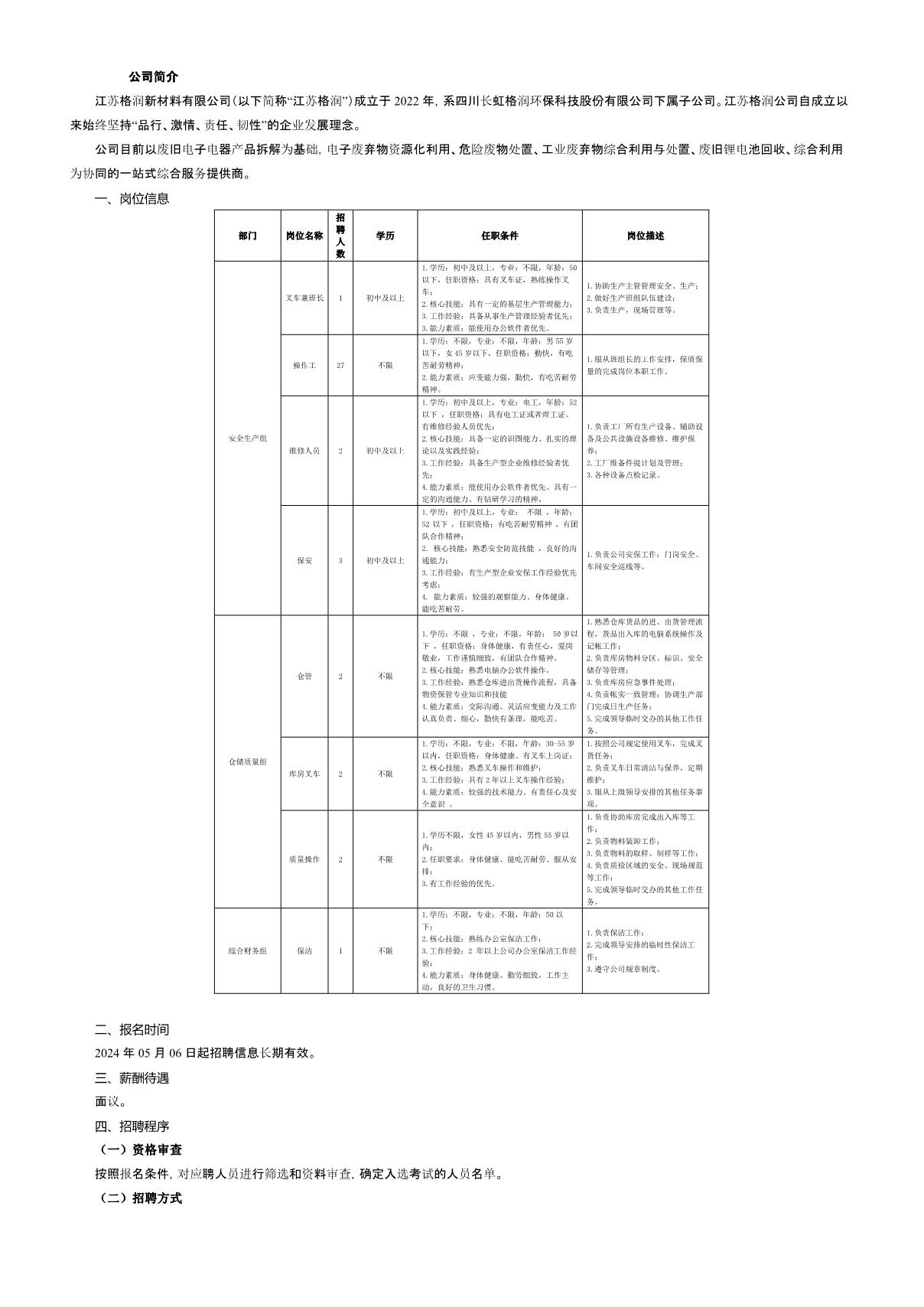 江蘇格潤新材料有限公司關于招聘維修電工等崗位的公告