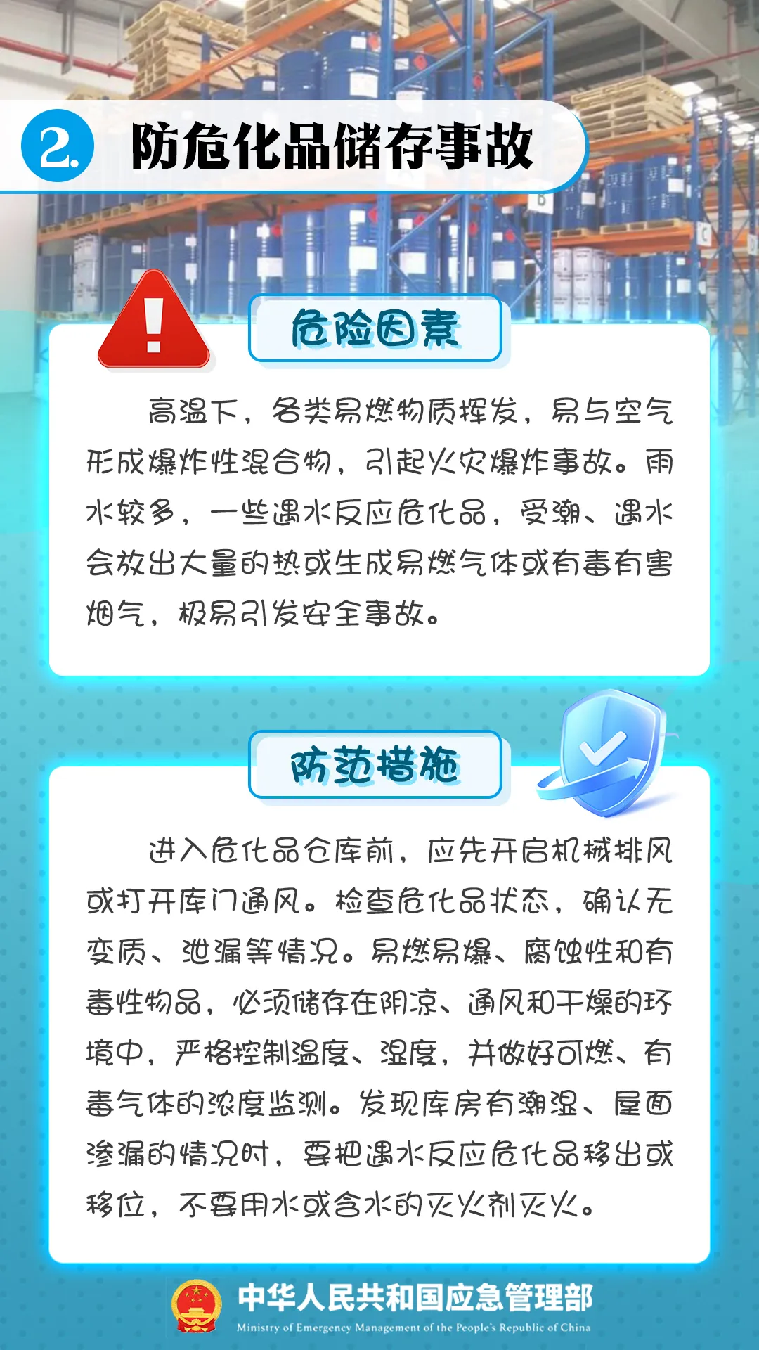 摘要:進入夏季,高溫、高濕、雷電、暴雨、大風等極端天氣增多,危險化學品在生產(chǎn)、運輸、儲存、使用等環(huán)節(jié)均存在較大安全風險,如果企業(yè)不嚴格落實安全管理相關規(guī)定,極易引發(fā)安全事故。