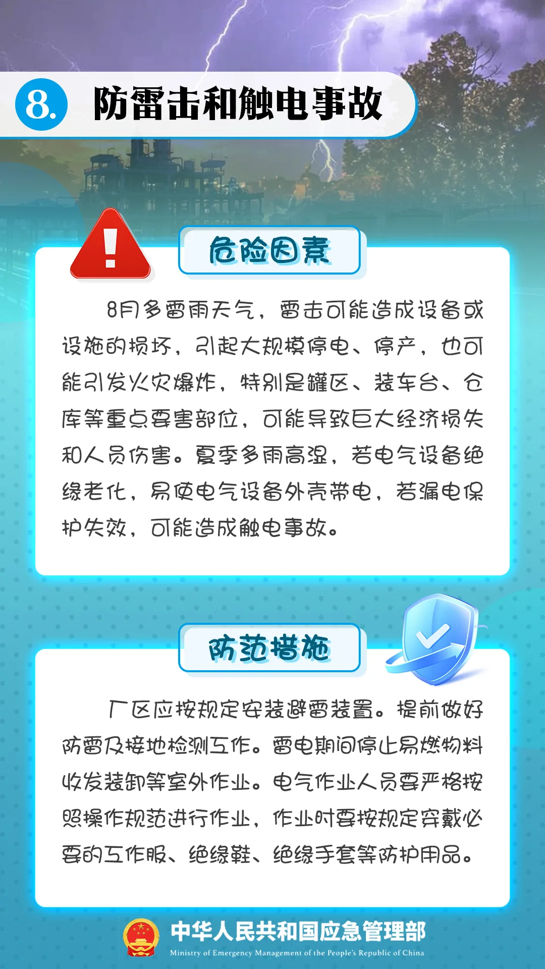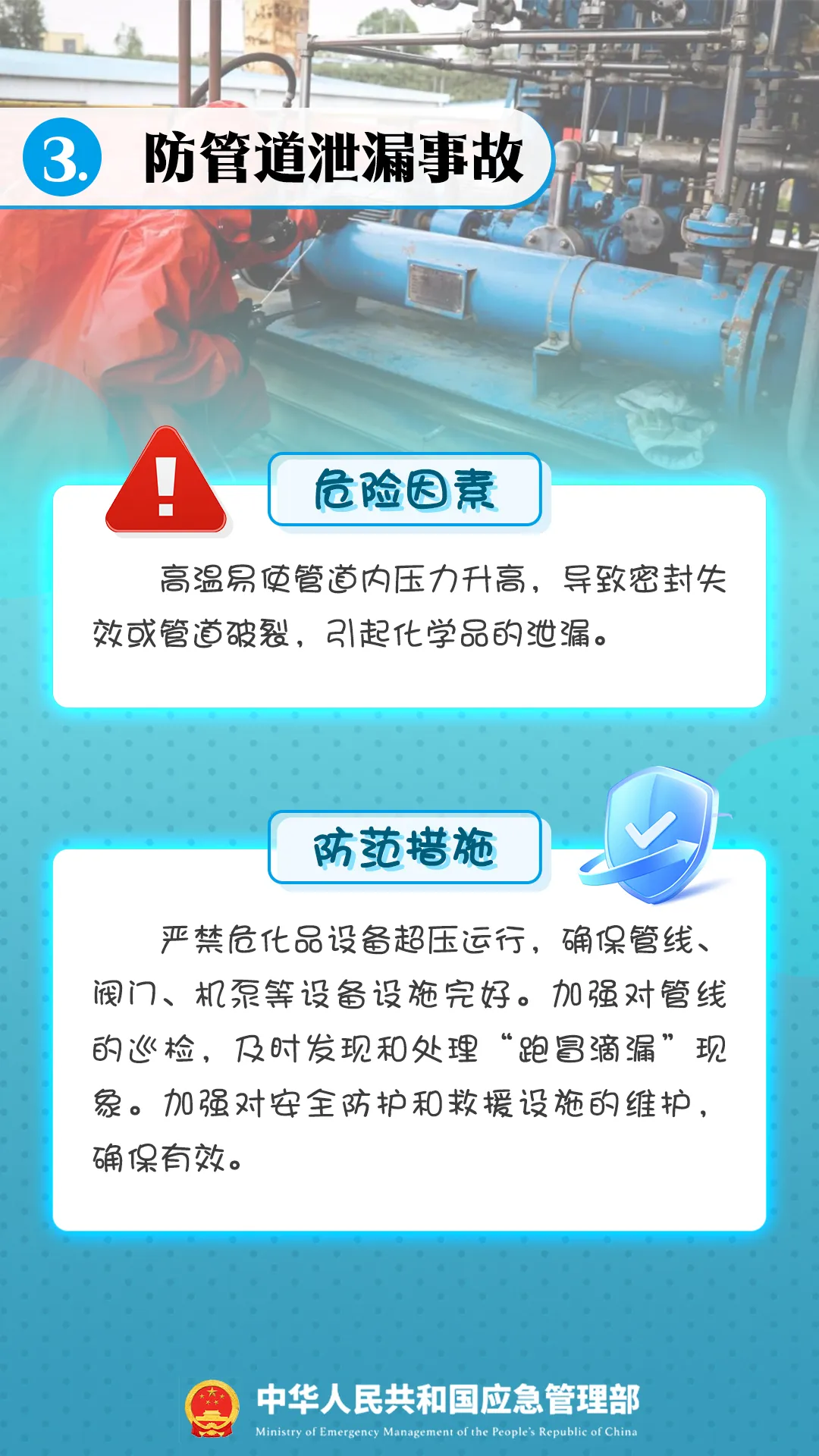 進入夏季,高溫、高濕、雷電、暴雨、大風等極端天氣增多,危險化學品在生產(chǎn)、運輸、儲存、使用等環(huán)節(jié)均存在較大安全風險,如果企業(yè)不嚴格落實安全管理相關規(guī)定,極易引發(fā)安全事故。