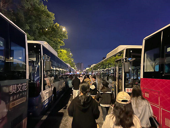 太原演唱會(huì)散場(chǎng)后,觀眾有序乘坐免費(fèi)接駁車。新華社記者 馬曉潔 攝