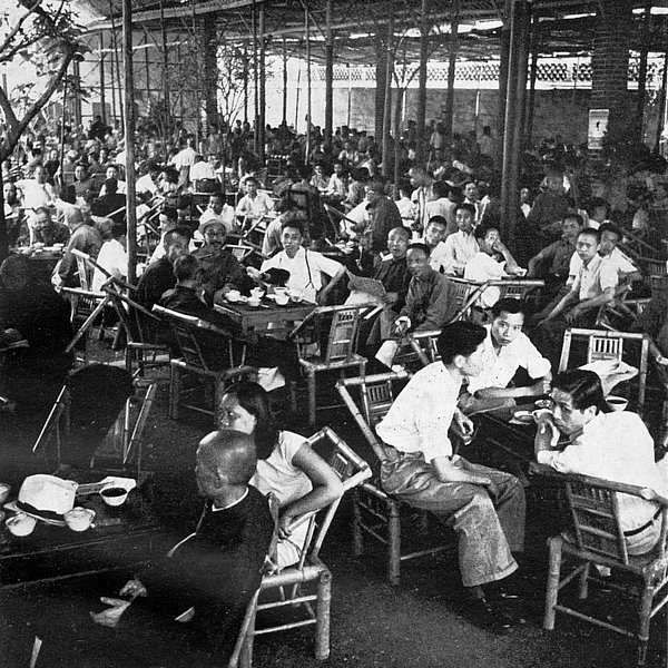 “這是一間很大的屋子,大約有50米長、20米寬,我估計(jì)客人有400多……你可以理發(fā)、刮胡子,甚至還可以坐在位子上讓人給你掏耳朵……”這段1949年的錄音,是瑞典年輕人馬悅?cè)辉诔啥即何趼芬患也桊^里,對著一臺(tái)鋼絲錄音機(jī)講述的見聞。他的聲音之外,茶館里人聲鼎沸,茶館外車水馬龍。