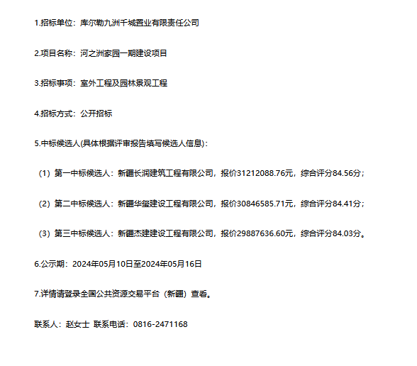 河之洲家園一期建設(shè)項(xiàng)目(室外工程及園林景觀工程)中標(biāo)候選人公示