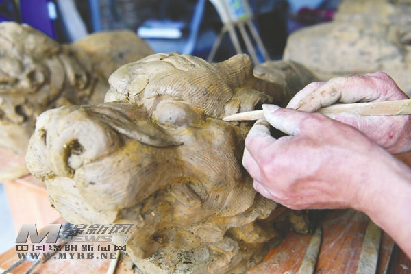 在泥坯工作車間,已初具雛形的八座龍頭泥坯呈現(xiàn)眼前。“這座泥坯是第一條龍睚眥的頭,傳說中是龍與狼所生之子。在重塑泥坯過程中,著重要突出其狼嘴、龍頭、龍腳的特征。與其他龍不同,它的耳朵是喇叭形狀……”經(jīng)過前期多次現(xiàn)場反復(fù)測量,查閱資料后再詳細(xì)比對,陳曉順對即將修復(fù)的每條龍的神形特征已了然于胸。他指著每座龍頭泥坯娓娓道來,猶如展開了一本龍的傳說故事。