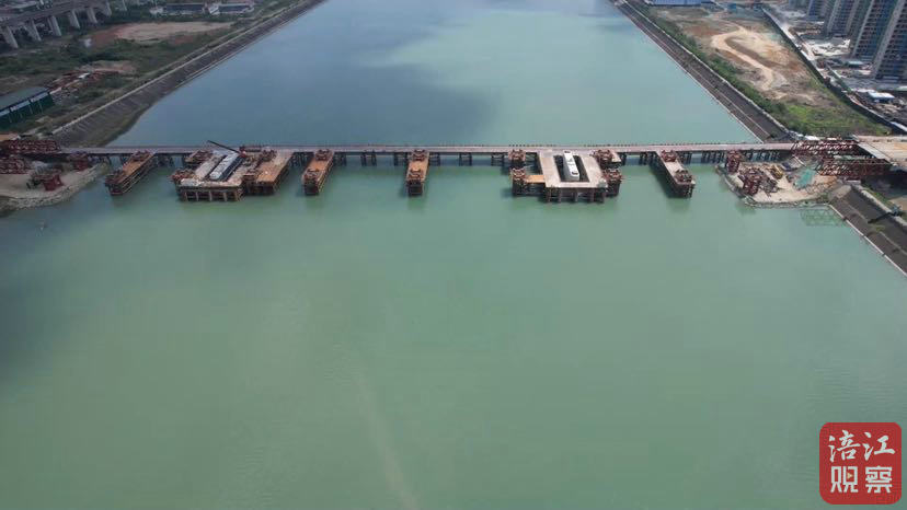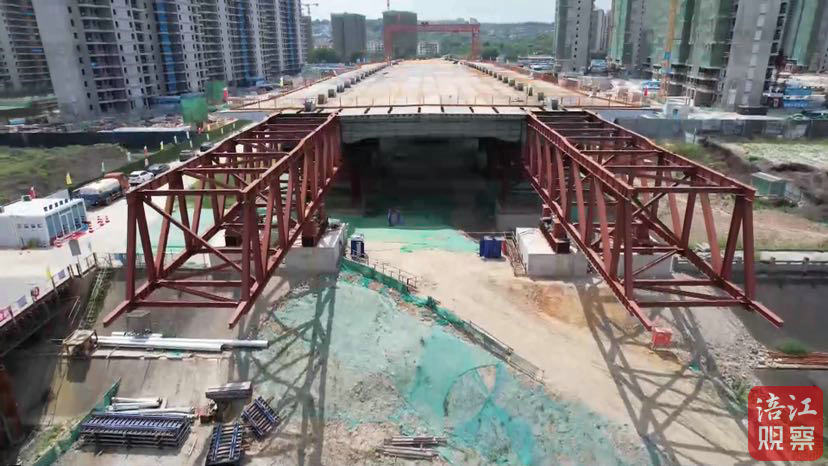 記者看到,在涪城區(qū)青義鎮(zhèn)青龍大道靠近涪江位置,大型跨河頂推鋼架已經(jīng)架設(shè)起來,頂推各項監(jiān)控設(shè)施已經(jīng)搭建。青石路涪江大橋項目負(fù)責(zé)人介紹,該橋為梁拱組合形式的鋼結(jié)構(gòu)橋,頂推施工采用不帶拱兩側(cè)非對稱頂推工藝,兩側(cè)頂推施工同步進(jìn)行。其中,涪城側(cè)鋼箱梁主梁長度255米,頂推距離316米,游仙側(cè)鋼箱梁主梁長度125米,頂推距離177米。跨江頂推距離達(dá)493米,頂推時間預(yù)計將在夏季完成。