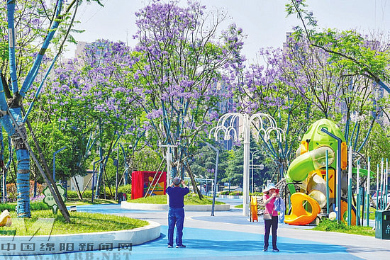 初夏的綿陽,藍(lán)花楹紛紛綻放。