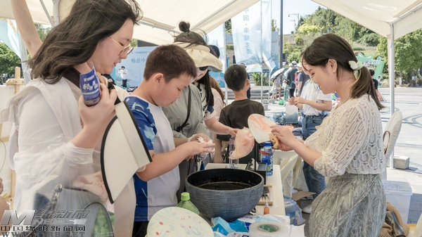 除了音樂(lè)會(huì),非遺集市、糖畫(huà)、剪紙、水拓團(tuán)扇、草編、刺繡香囊等非遺體驗(yàn)活動(dòng),也吸引了眾多游客。非遺集市匯聚了多位民間藝人,現(xiàn)場(chǎng)創(chuàng)作手工藝品。游客們更是躍躍欲試,在技藝大師的指導(dǎo)下親自上手制作,感受非遺的獨(dú)特魅力。