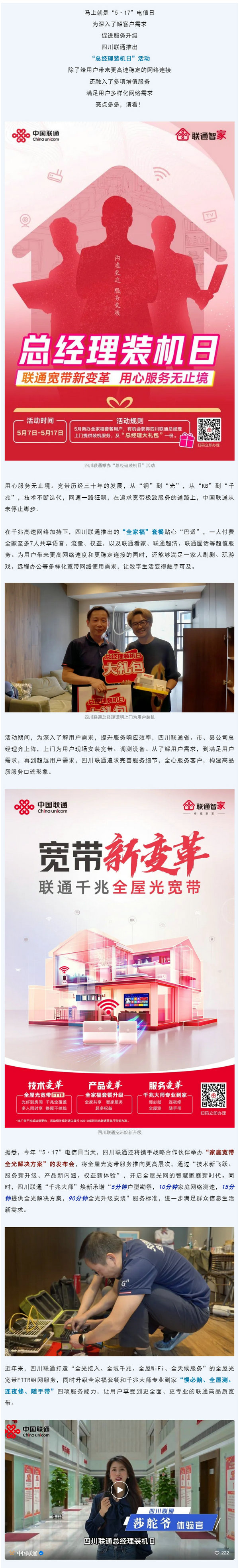 馬上就是“5·17”電信日,為深入了解客戶需求促進服務(wù)升級,四川聯(lián)通推出“總經(jīng)理裝機日”活動。