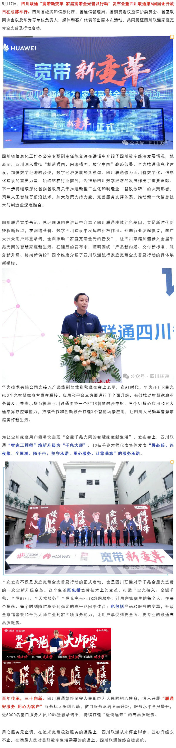 517世界電信日|四川聯(lián)通重磅發(fā)布家庭寬帶全光普及行動(dòng)