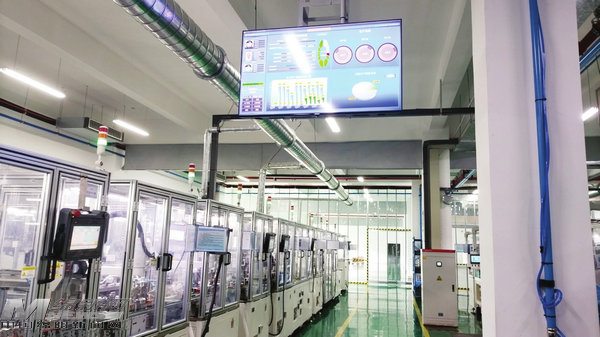 順著公司技術(shù)總監(jiān)林琳手指的方向,記者看到在這條產(chǎn)線上方,還有一個(gè)集成控制平臺(tái),連接到MES系統(tǒng)。有了這個(gè)“超級(jí)大腦”的加持,整條產(chǎn)線具備排產(chǎn)管理、質(zhì)量追溯、過程管控、故障預(yù)警、自動(dòng)隔離不良品等功能。