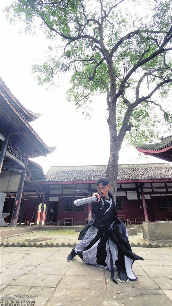 古寺里,古樹下,身著古裝的翩翩男子凌空舞劍,恣意瀟灑……這是綿陽(yáng)三臺(tái)樂安鎮(zhèn)習(xí)武20年的小伙陳彪5月16日發(fā)在某網(wǎng)絡(luò)平臺(tái)的一段短視頻。