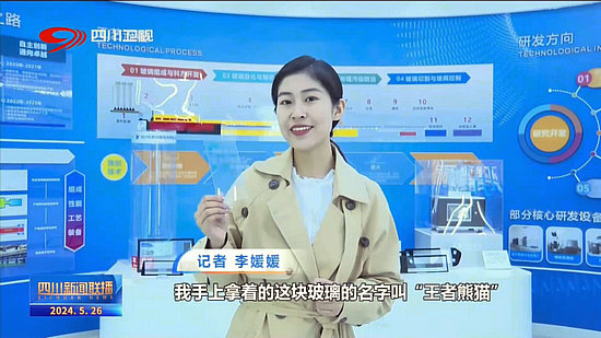記者 李媛媛:我手上拿著這塊玻璃的名字叫“王者熊貓”,聽(tīng)著霸氣的名字就知道它不是一塊普通的玻璃,全球每四部手機(jī)就有一部手機(jī)使用的是我手上的這塊兒“王者熊貓”蓋板玻璃,那它具有抗彎折度高、抗沖擊性能強(qiáng)等特點(diǎn),比如從2米的高空下把它拋下,它也能保證完好無(wú)損。