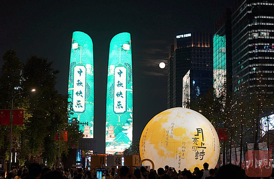 2023年中秋佳節(jié),成都高新區(qū)天府雙塔舉辦詩(shī)詞主題光影秀。四川在線記者 吳楓 攝